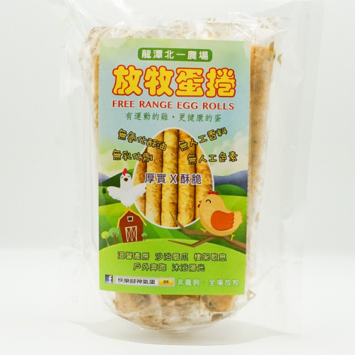 以「龍潭北一畜牧場」最優質、最新鮮的「快樂腳神氣蛋」製作出美味又安心的蛋捲