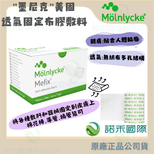 消費者使用前應詳閱醫療器材說明書 醫療器材品名: “墨尼克”美固透氣固定布膠敷料(未滅菌) "Molnlycke" Mefix Self-adhesive Fabric (Non-Sterile) 醫療器材許可證字號/登錄字號 :衛署醫器輸壹字第 000844 號 許可證所有人或登錄者之名稱 :台灣墨尼克醫療用品股份有限公司 許可證所有人或登錄者之地址 :臺北市大安區敦化南路2段60號2樓之1 製造業者名稱 : MOLNLYCKE HEALTH CARE (THAILAND) LIMITED 製造業者地址 :AMATA NAKORN (BANG PAKONG) INDUSTRIAL ESTATE 700/461 MOO 7 BANGNA-TRAD RD. KM. 57 TAMBOL DONHUAROH, AMPHUR MUANG CHONBURI 20000 THAILAND 製造批號、製造日期、有效期間如原廠包裝上所示 產品說明 Mefix 是一種黏性膠帶,提供固定固定敷料、管材。親膚性佳。。無紡布的多孔結構確保透氣性。可貼合人體輪廓。含有丙烯酸黏劑。 使用方法: 1.裁減適當尺寸。 2.移除背膠。平貼於敷料或管材上。黏貼時請勿過度拉伸Mefix。 警告Mefix不適用於固定挽救生命器械和生命維持器械。 製造日期:最新效期 有效期間(或保存期限):3年 製造日期會因庫存批次而有所不同,請詳見產品包裝標示 【藥商執照】 ▍藥商名稱:諾禾國際有限公司 ▍藥商地址:新北市新莊區中信街178號24樓之5 ▍藥商許可執照字號:新北府莊衛醫器販 字第MD6231056910號 ▍藥商諮詢專線:02-77529828 ▍營業時間:週一至週五 09:00-22:00