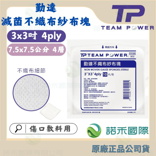 【勤達 滅菌不織布紗布塊】3X3吋 7.5x7.5公分 4層 10片裝 小傷口護理 不織布布料滑順不沾 傷口敷料
