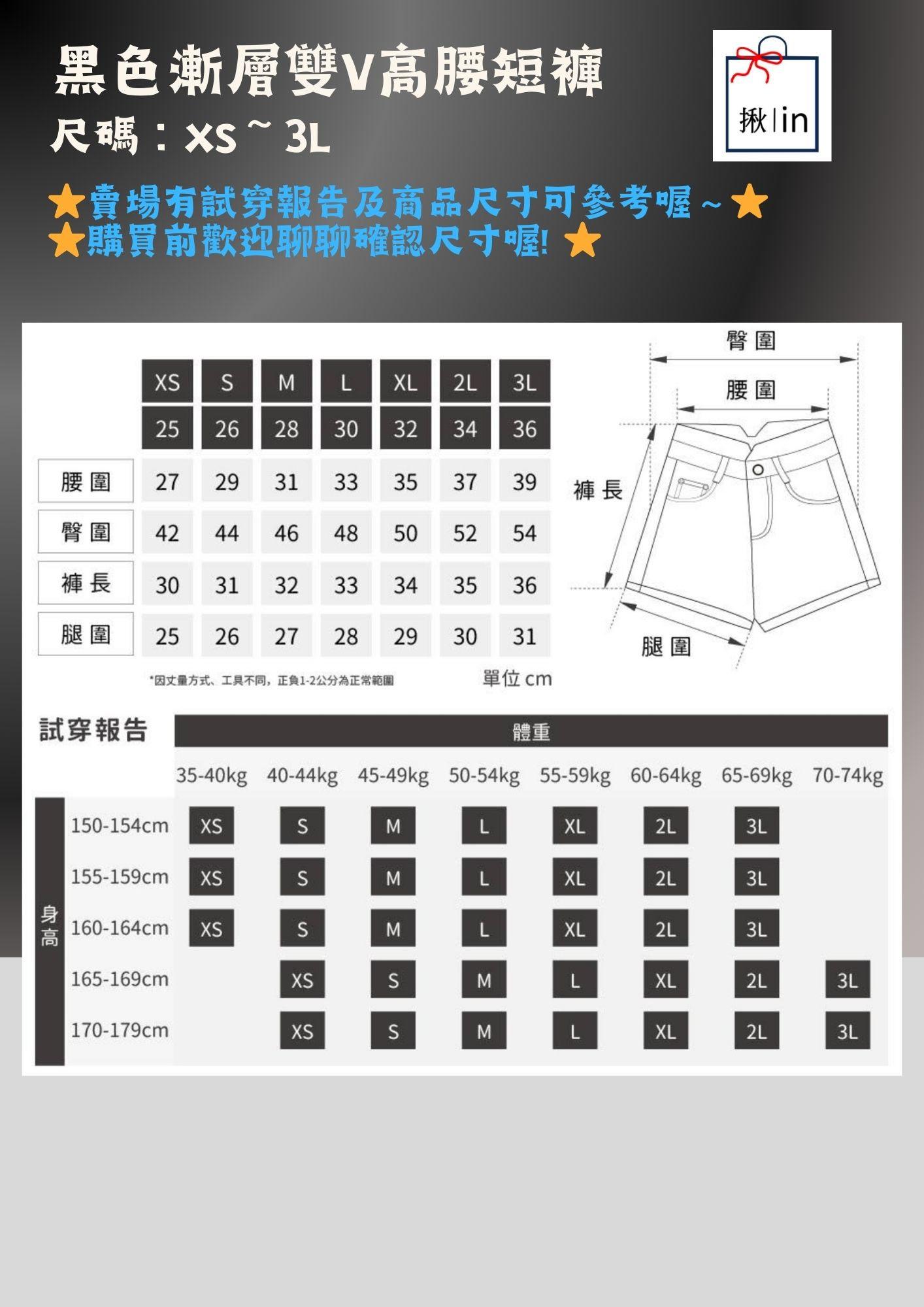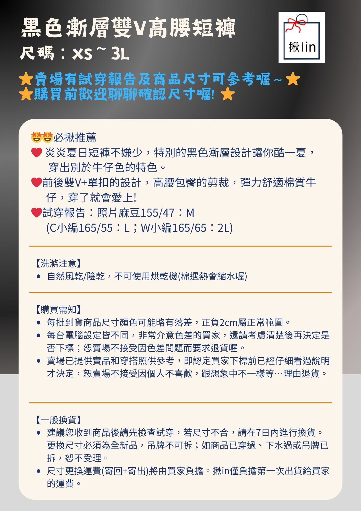 ** 台灣現貨 ** 揪in 牛仔短褲 黑色漸層色 前後雙V高腰顯瘦 包臀顯瘦 彈力舒適 台灣自有品牌