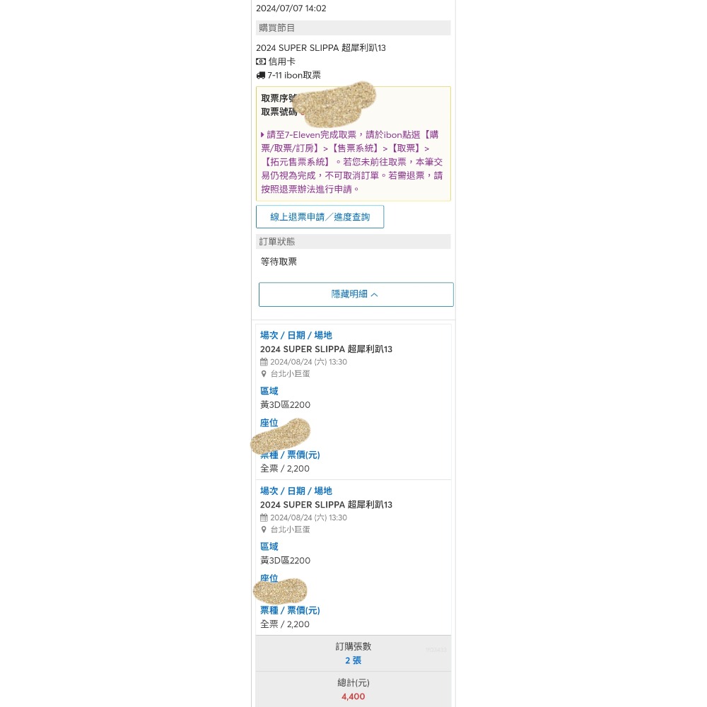 超犀利趴8/24 兩張黃3D門票 票價位子2200