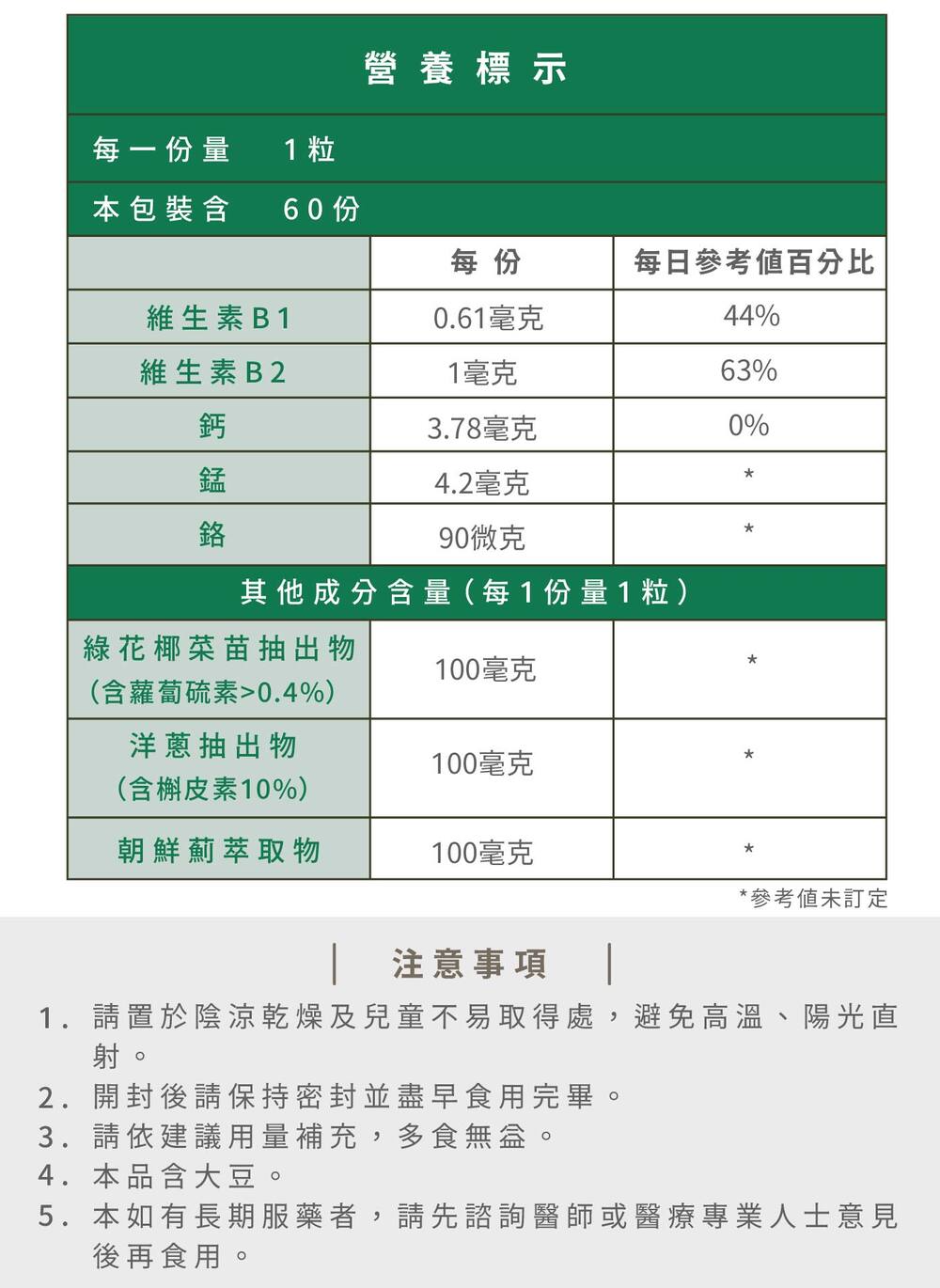 綠源萃取60粒|綠花椰菜抽出物(含蘿蔔硫素)、洋蔥抽出物(含槲皮素)、朝鮮薊、酵母鉻、錳、長效維生素B1、維生素B2