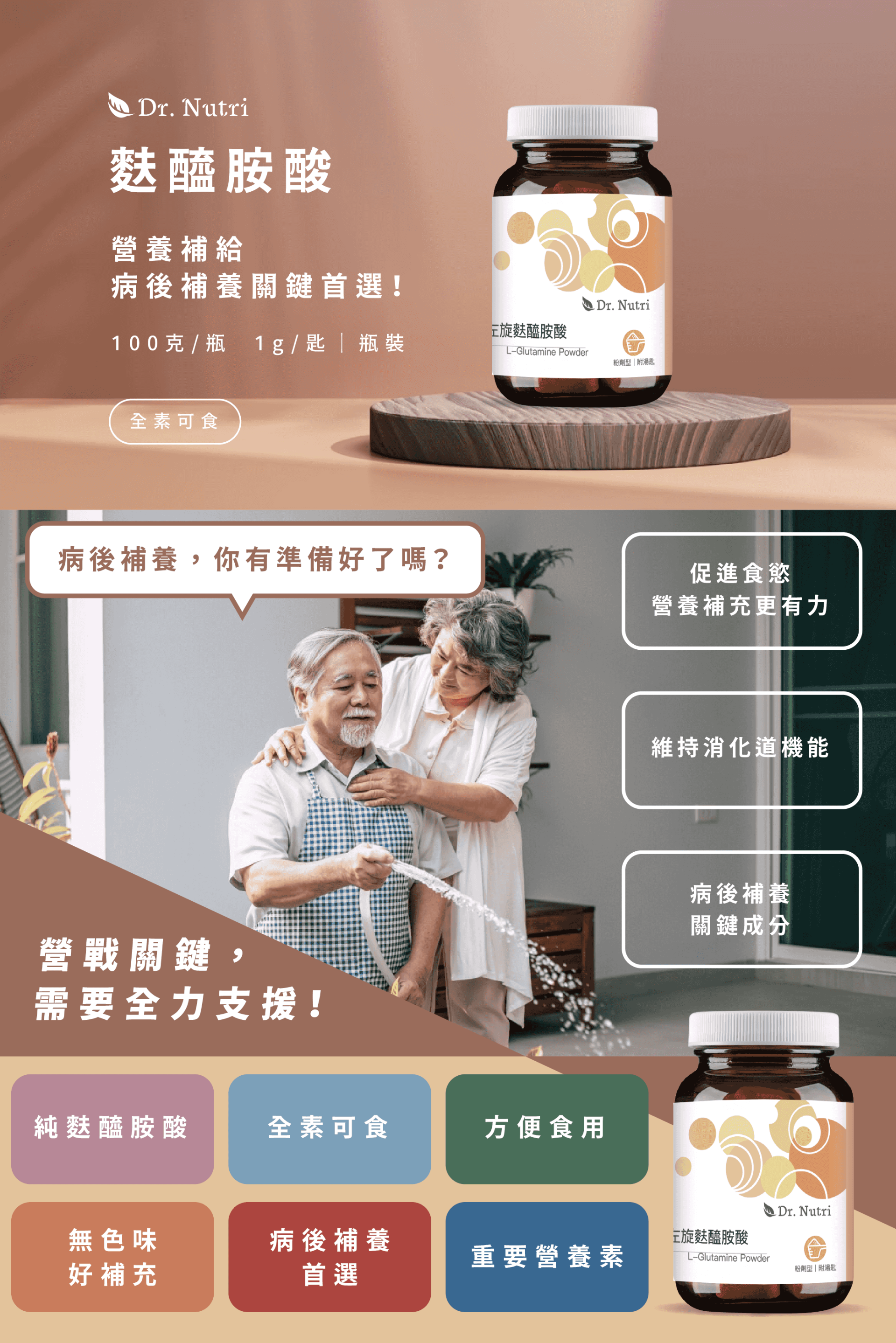 純左旋麩醯胺酸|100g大份量|Dr.Nutri芯漾生醫|Glutamine|無色無味易溶於水