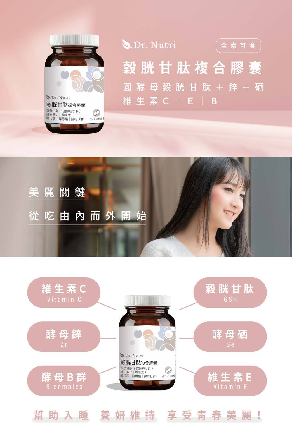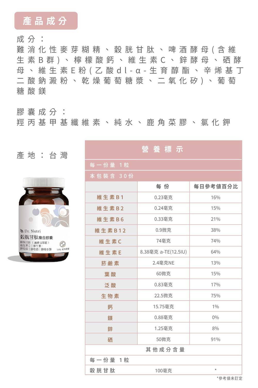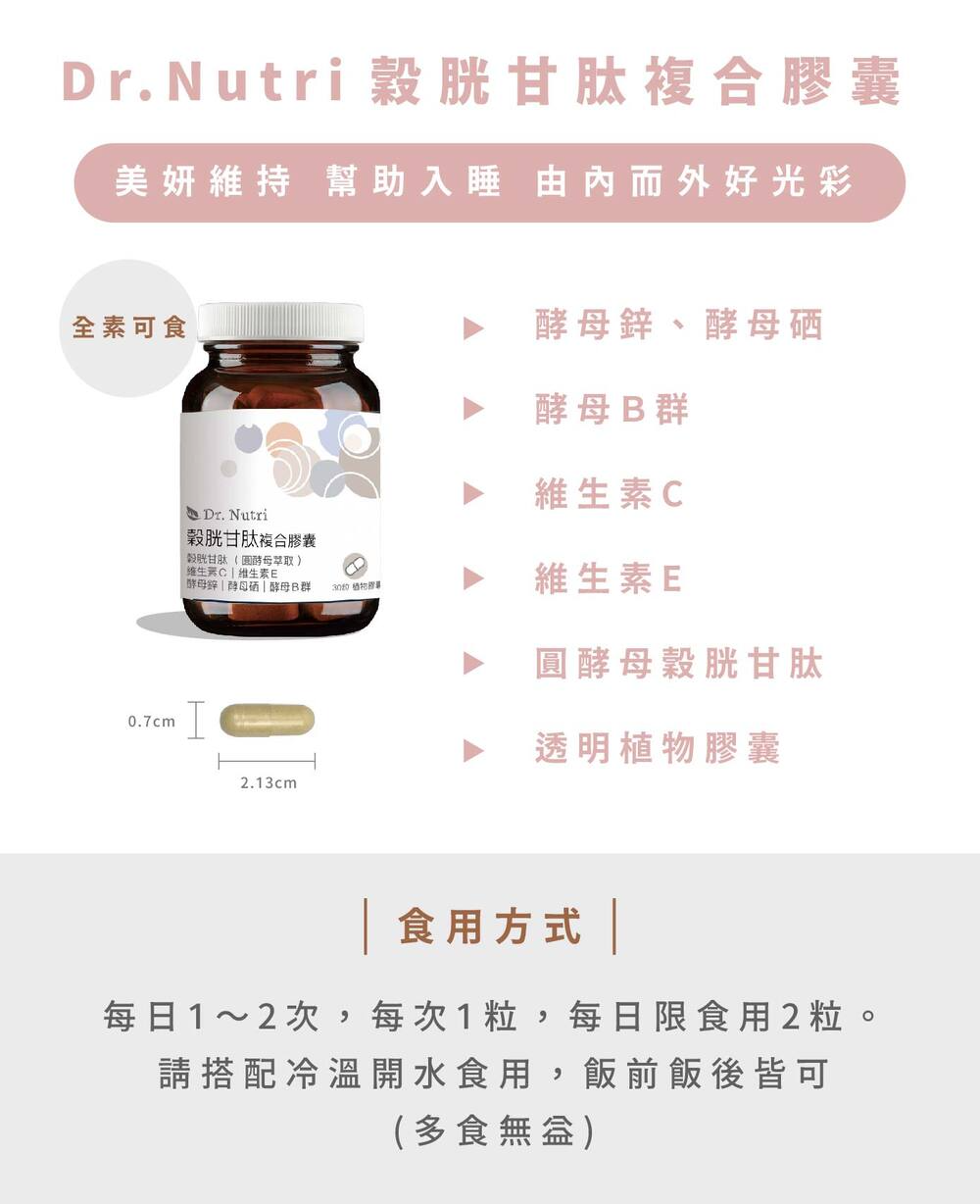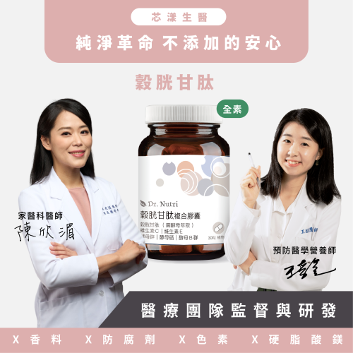 有感穀胱甘肽+酵母B群+酵母硒+酵母鋅|Dr.Nutri芯漾生醫|無硬脂酸鎂、二氧化矽|全素|30粒玻璃罐|售899元
