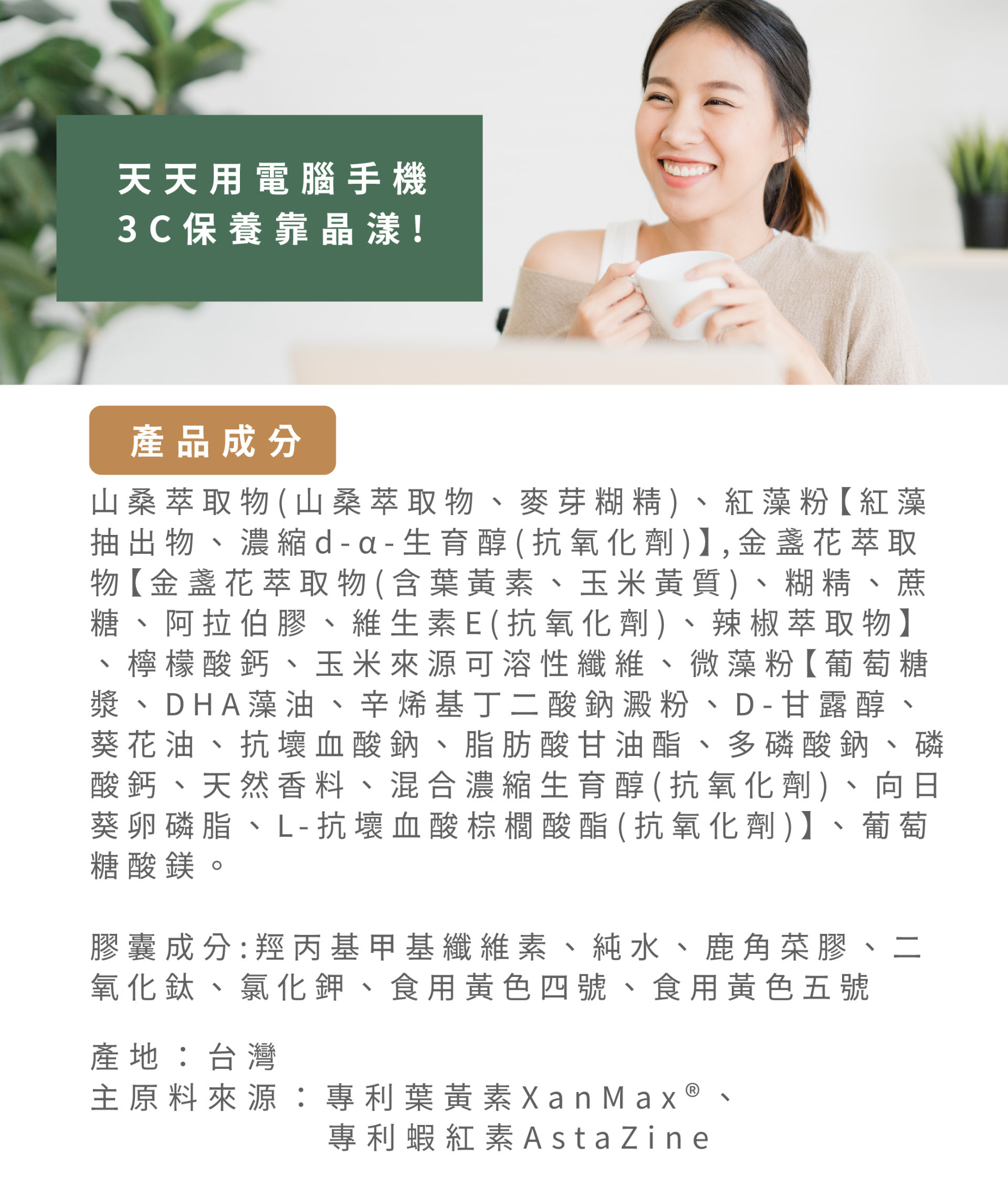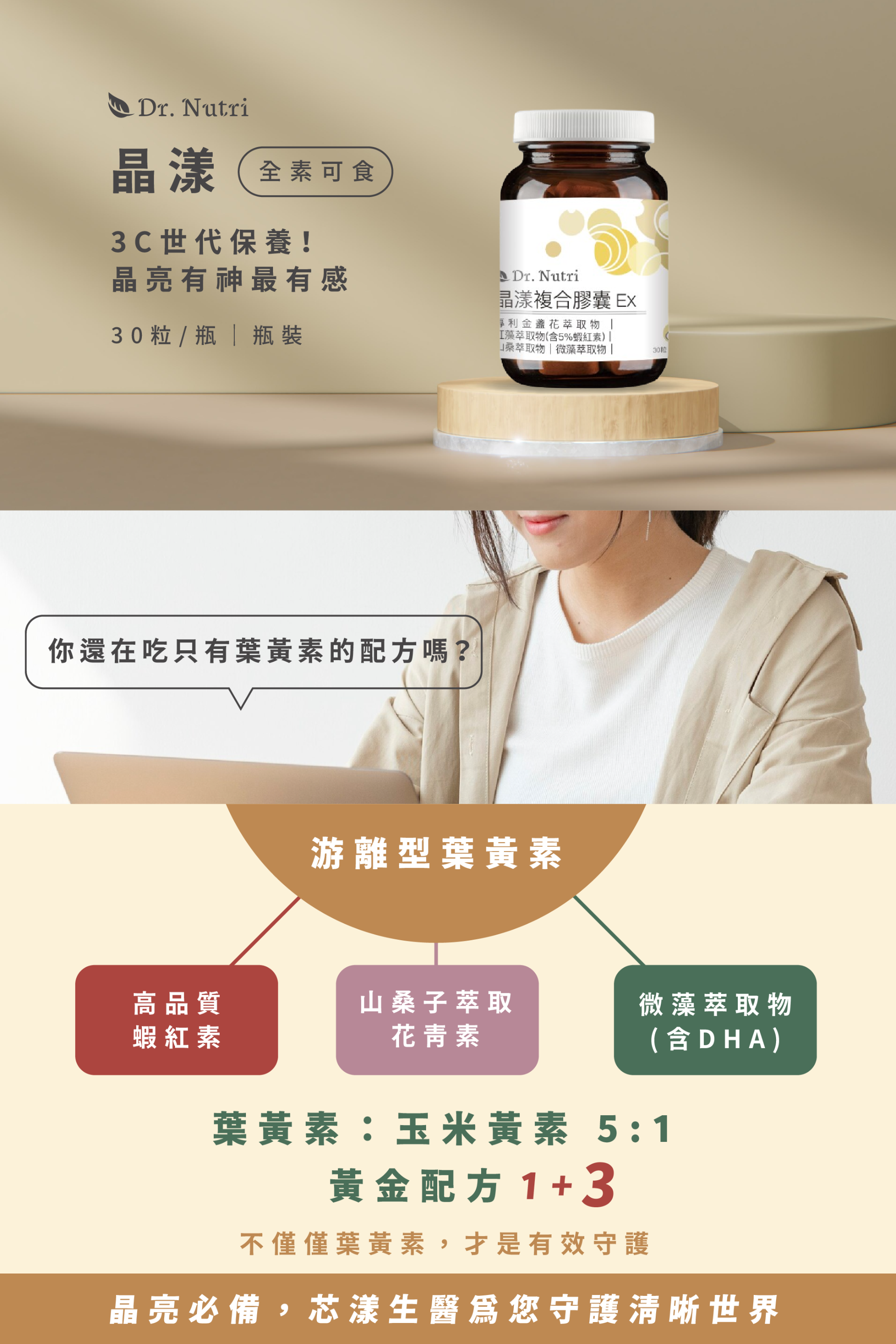 葉黃素:玉米黃素5:1+山桑子+4mg 蝦紅素|Dr.Nutri芯漾生醫|無硬脂酸鎂二氧化矽|全素|30粒|售1089元