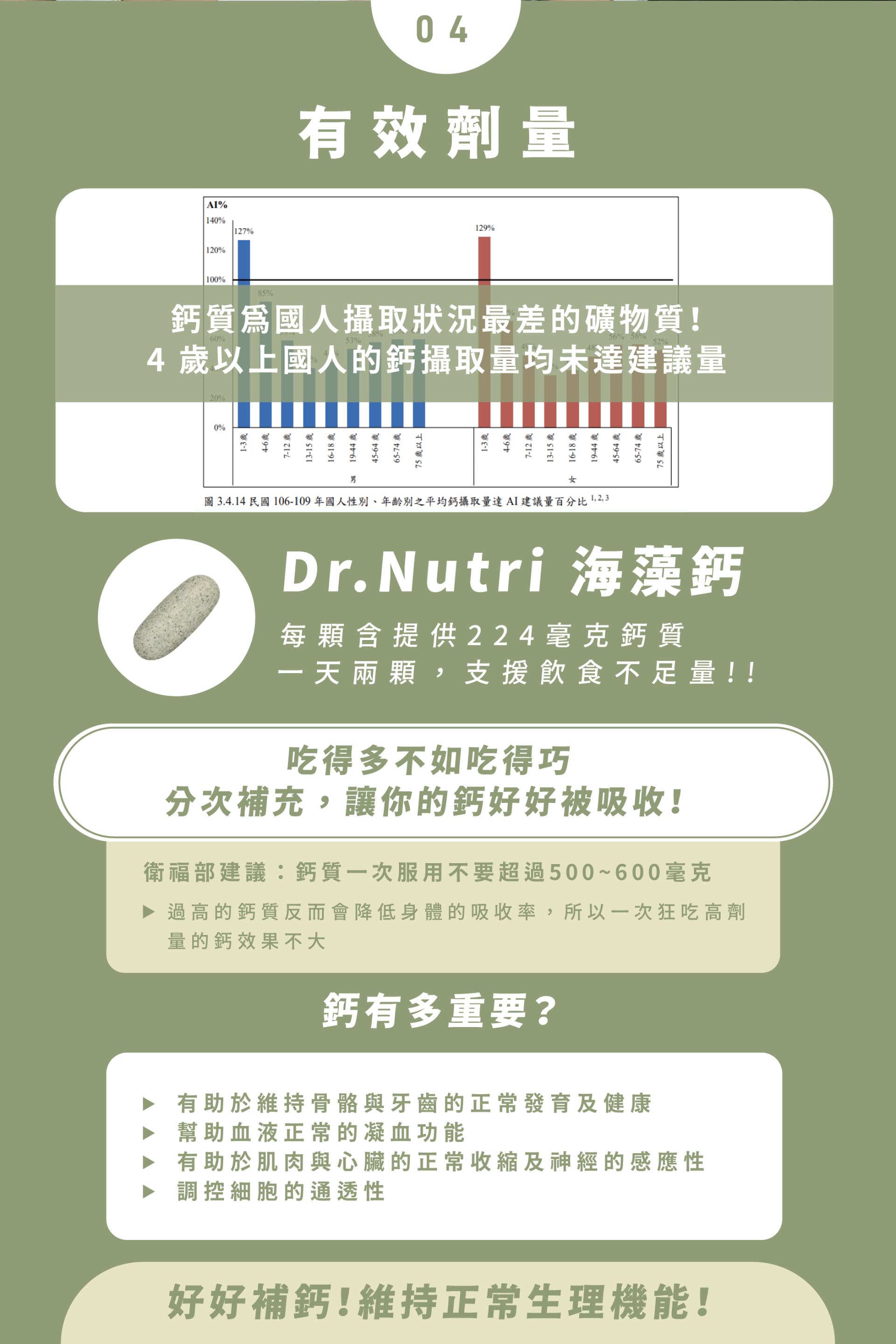 海藻鈣複合錠+維生素D+納豆發酵物(維生素K2)+酪蛋白水解物|Dr.Nutri芯漾生醫