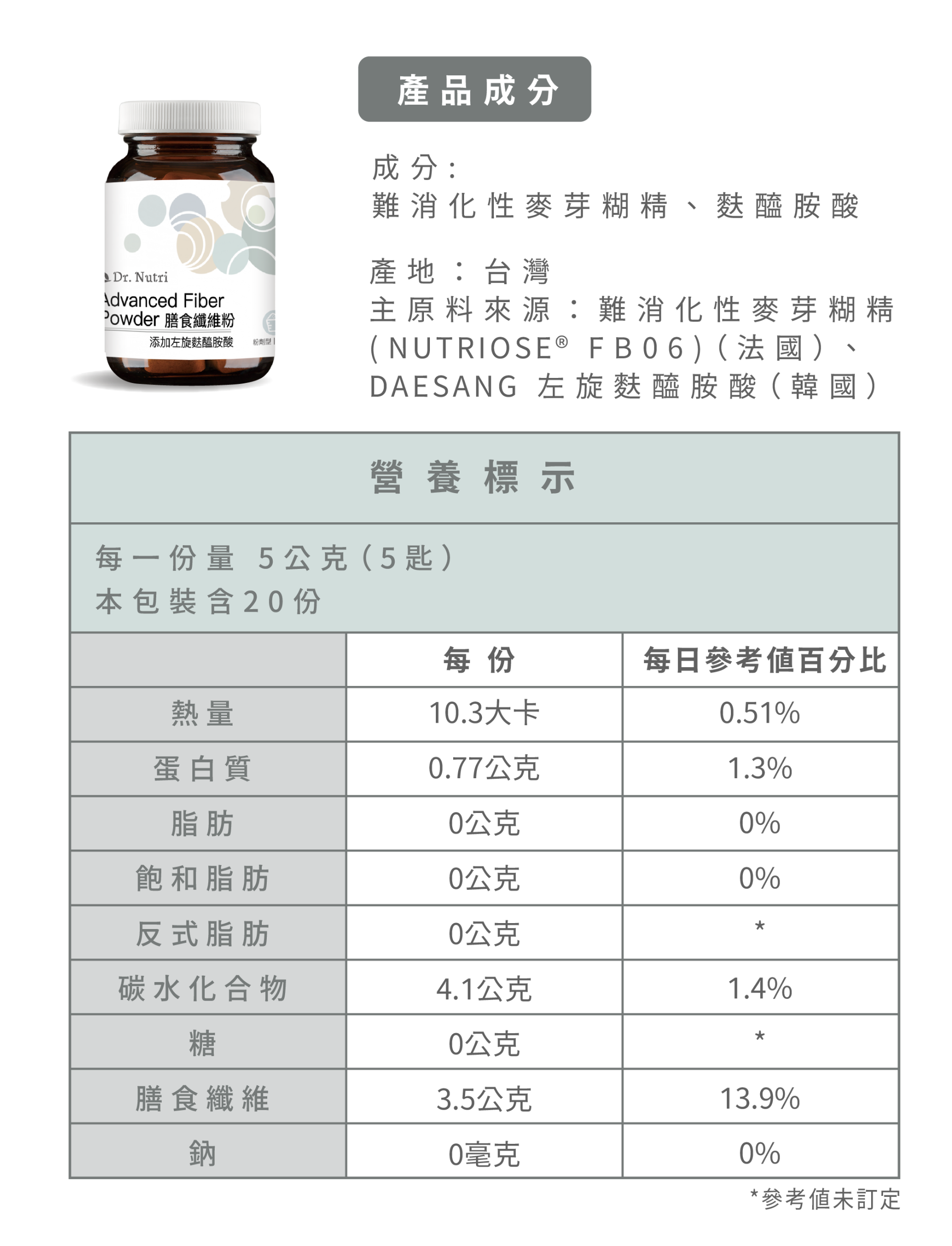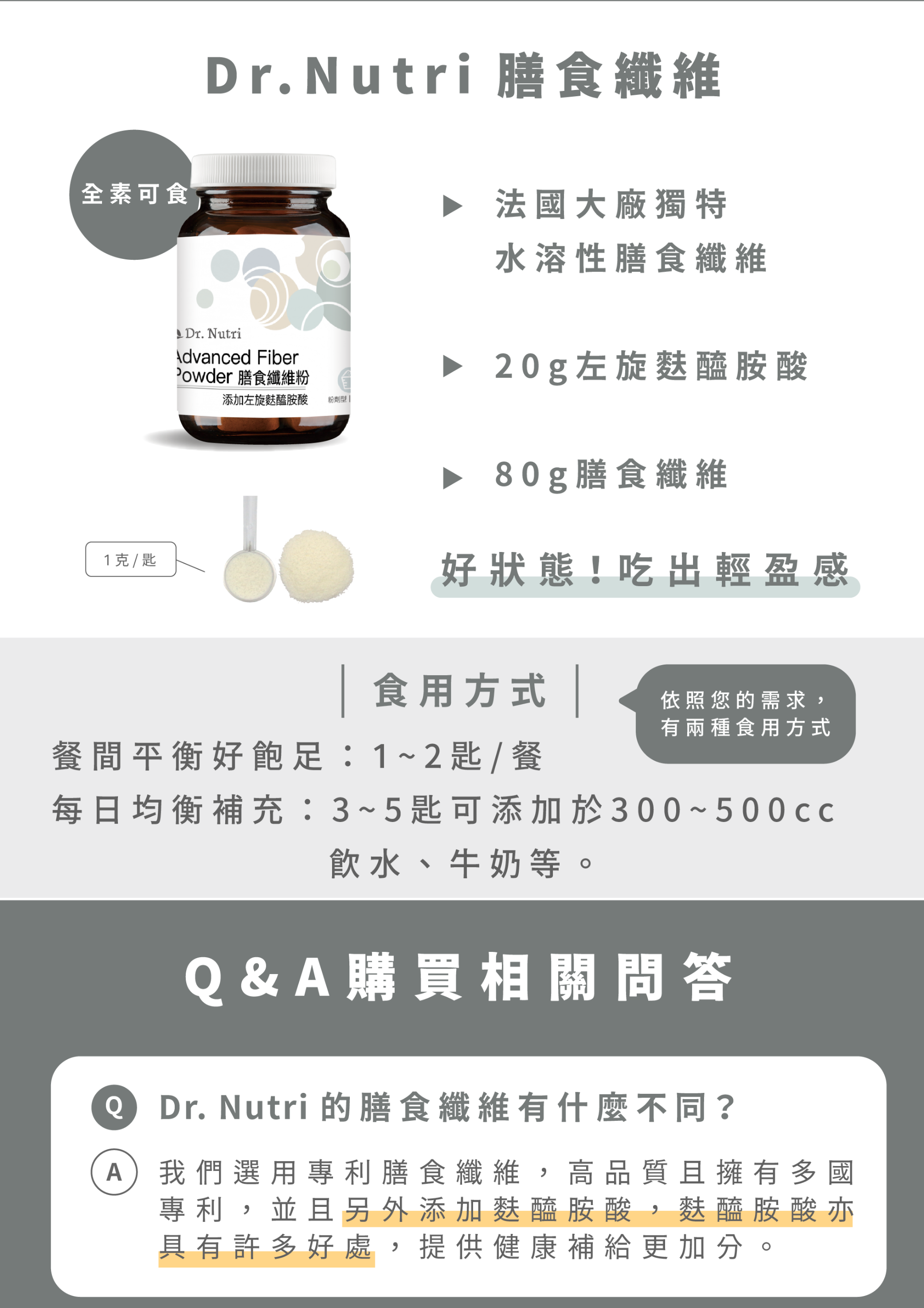 水溶性膳食纖維+左旋麩醯胺酸 |Dr.Nutri 芯漾生醫|無賦刑劑(水中易溶解、無味)|100g玻璃罐