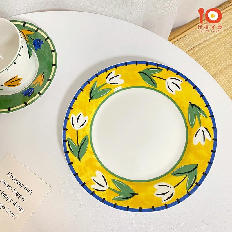 拾拾食器|韓國手繪鬱金香陶瓷盤◆早餐盤 瓷盤 餐盤 圓盤 蛋糕盤 咖啡杯盤 杯具組 情人節 禮物 日本 現貨+預購 台灣