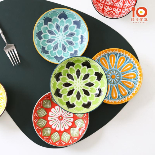 拾拾食器|日式撞色波西米亞風格盤◆陶瓷盤 早餐盤 餐盤 菜盤 6吋 深盤 蛋糕盤 湯碗 甜湯碗 日本 現貨+預購 台灣