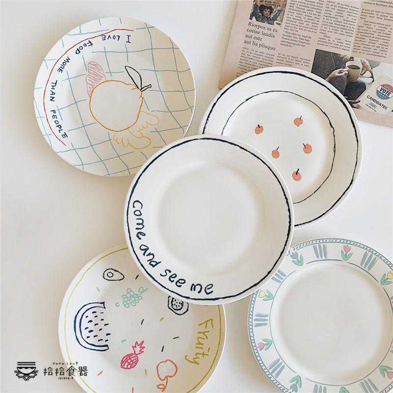 拾拾食器|韓國手繪塗鴉盤◆陶瓷盤 餐盤 8吋 蛋糕盤 甜點盤 水果盤 花朵 櫻桃 現貨+預購 台灣