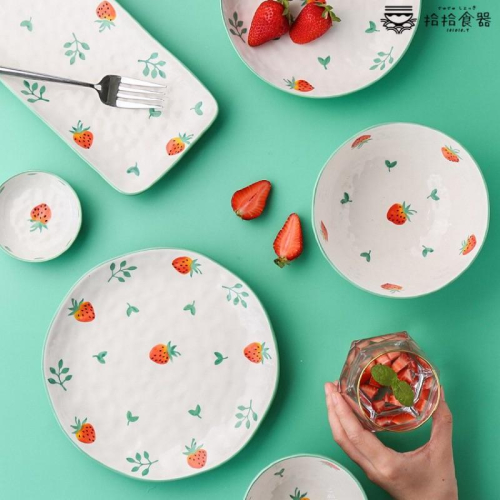 拾拾食器|日式小清新草莓餐具◆可微波 早餐盤 瓷盤 蛋糕盤 飯碗 沙拉碗 醬料碟 日本 現貨+預購 台灣