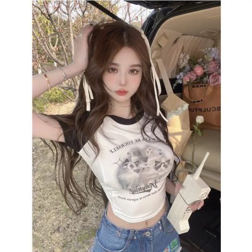 童趣風洋氣減齡短袖t恤女夏季設計感