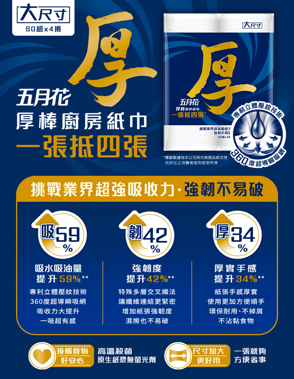 【MAY FLOWER 五月花】厚棒廚房紙巾60張x4捲x2串