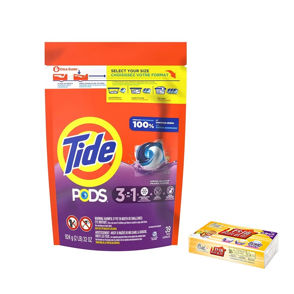 Tide 汰漬 洗衣膠囊 春天草地香 39顆/袋+一秒抽取式廚房紙巾60抽/包