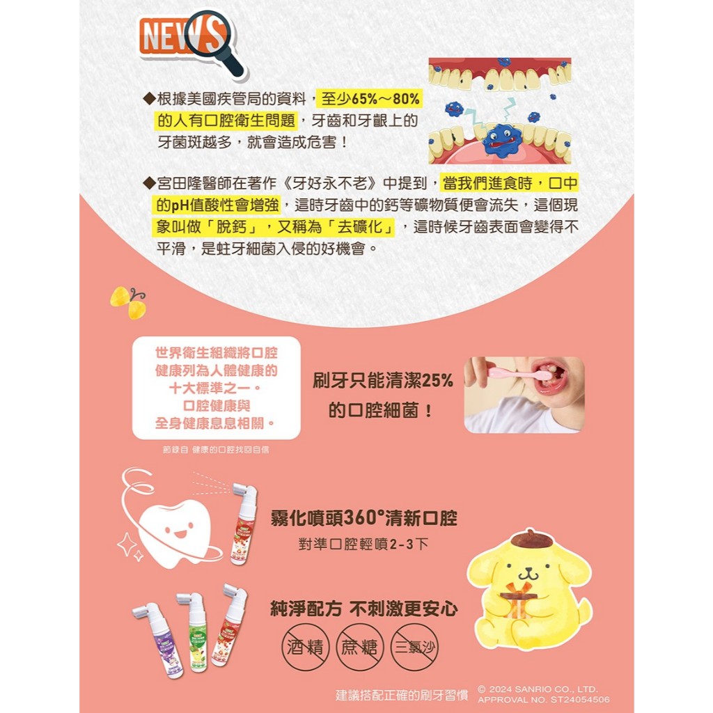 外出時沒辦法馬上刷牙,就可以噴一噴,給他多一層保護。尤其是對那些刷牙抗拒的小朋友,這個噴霧還能當作輔助手段來用,真的超級貼心。
