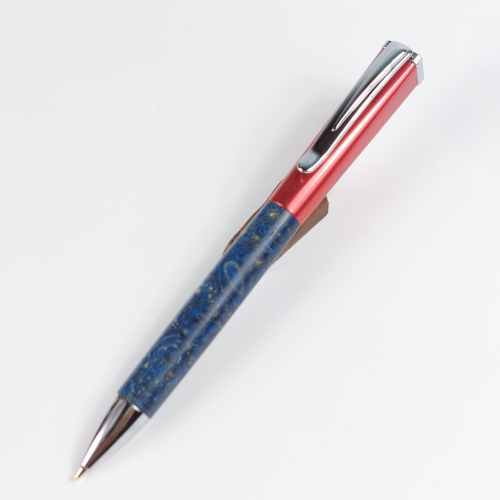 用台灣製作的高品質金屬套件來製作手工筆,讓溫潤的木頭包圍冰冷的金屬,他發現閃閃發亮的金屬與樹木木紋相互輝映,襯托出獨特的美麗。