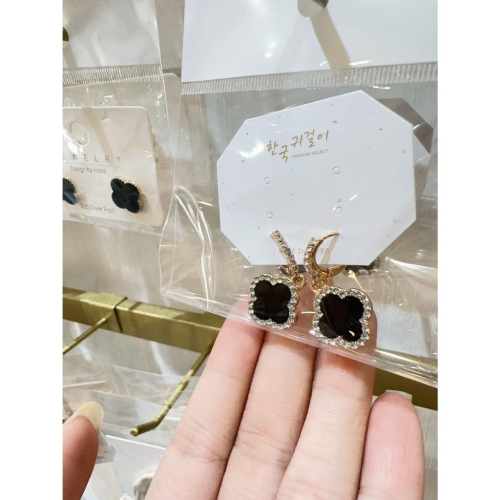 🍀小香風金邊帶鑽黑色幸運四葉草🍀