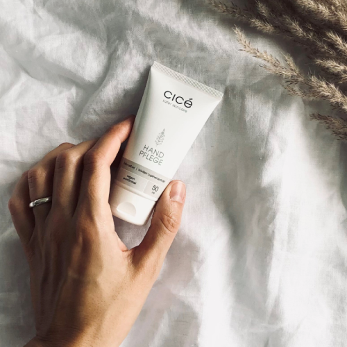 它所含的微銀可抑制皮膚上的細菌:在懸浮測試中,活性成分 MicroSilver BG 在兩分鐘內殺死了超過 99.99% 的 MVA 病毒。天然緊膚活性成分羽扇豆萃取物可促進膠原蛋白合成,滋養的葡萄籽油的添加使 cicé 最愛護手霜的配方更加完美。