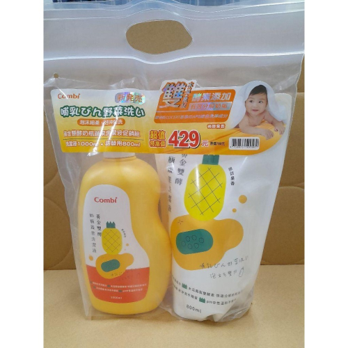 Combi康貝 黃金雙酵奶瓶蔬果洗潔液 (1瓶1000ml+1包補充包800ml) 奶瓶清潔