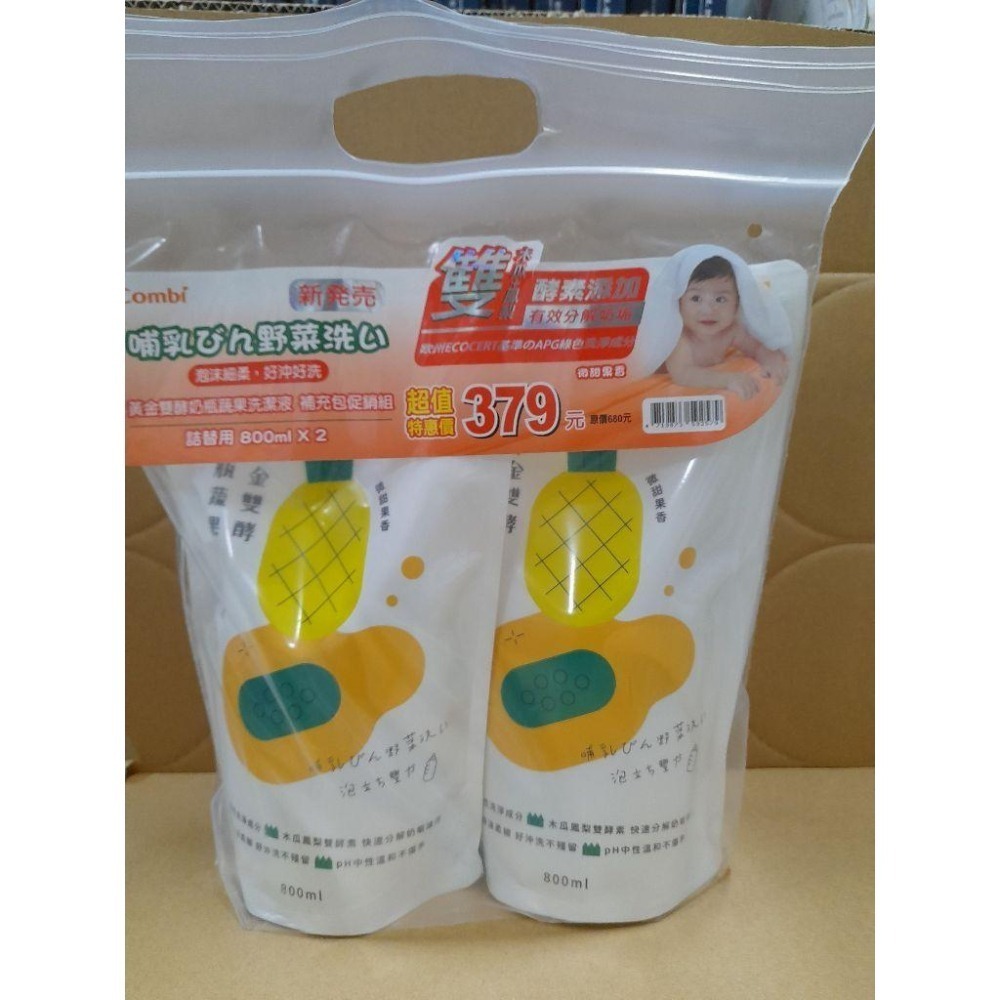 Combi康貝 黃金雙酵奶瓶蔬果洗潔液 (2包補充包800ml) 奶瓶清潔 超商限重只能兩串