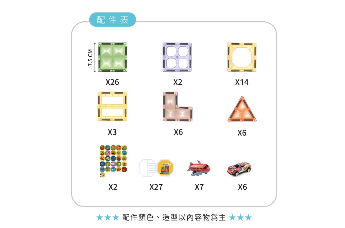 ※注意事項: 若磁力片外觀完整,磁鐵會在內部晃動不影響使用皆屬正常現象,不含在退換貨服務內。