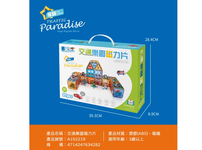 產品名稱:交通樂園磁力片(97pcs)(含迴力小汽車/小飛機共13台)