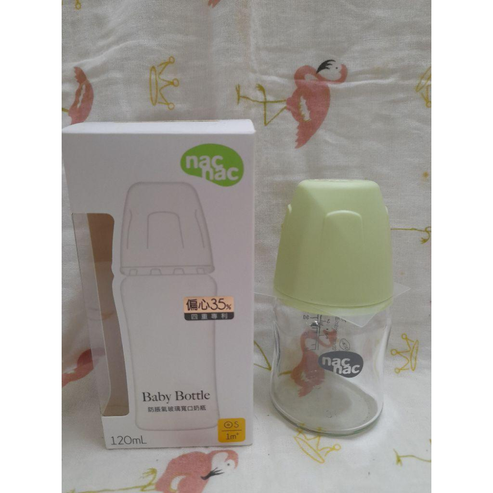 nac nac 妍心35%晶透防脹氣玻璃寬口奶瓶120mL 茉莉綠 玻璃奶瓶 寬口奶瓶 寬口
