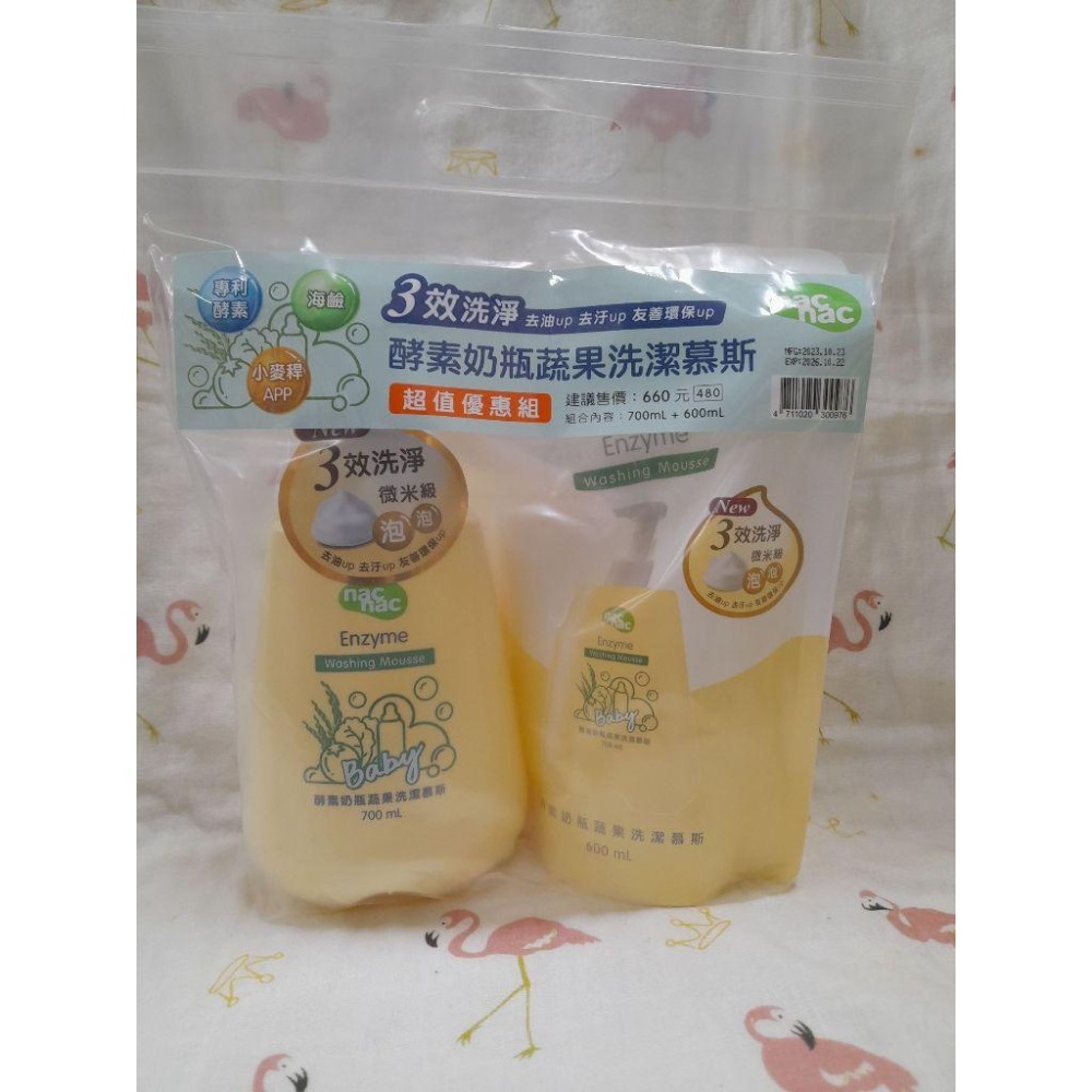 Nac Nac 酵素奶瓶蔬果洗潔慕斯(1罐700ml+1補600ml)組合包