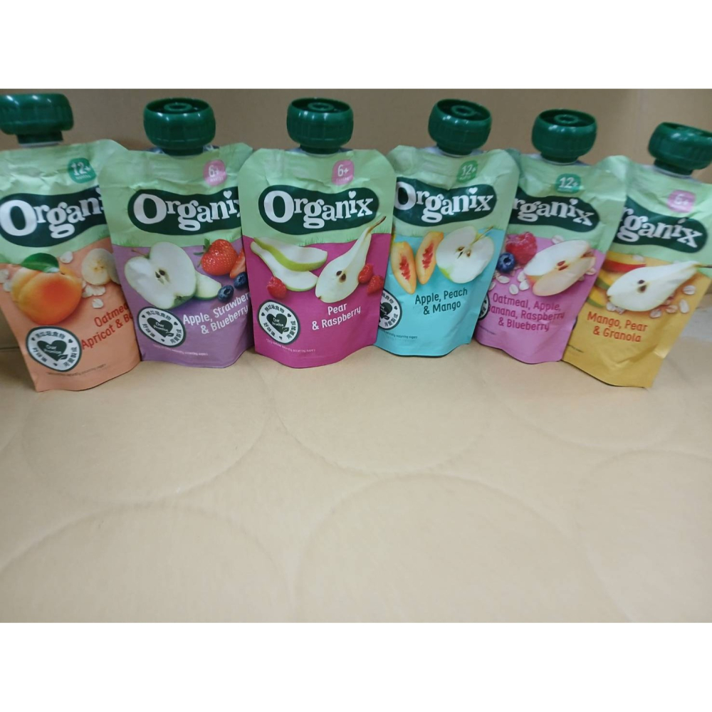 燕麥纖泥-蘋果香蕉覆盆莓12M+:開水44%、蘋果泥18%、香蕉泥14%、覆盆莓泥14%、米粉4%、燕麥粉3%、燕麥片1.5%、藍莓1.5%
