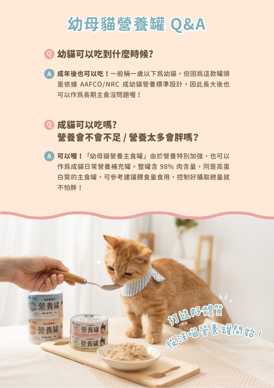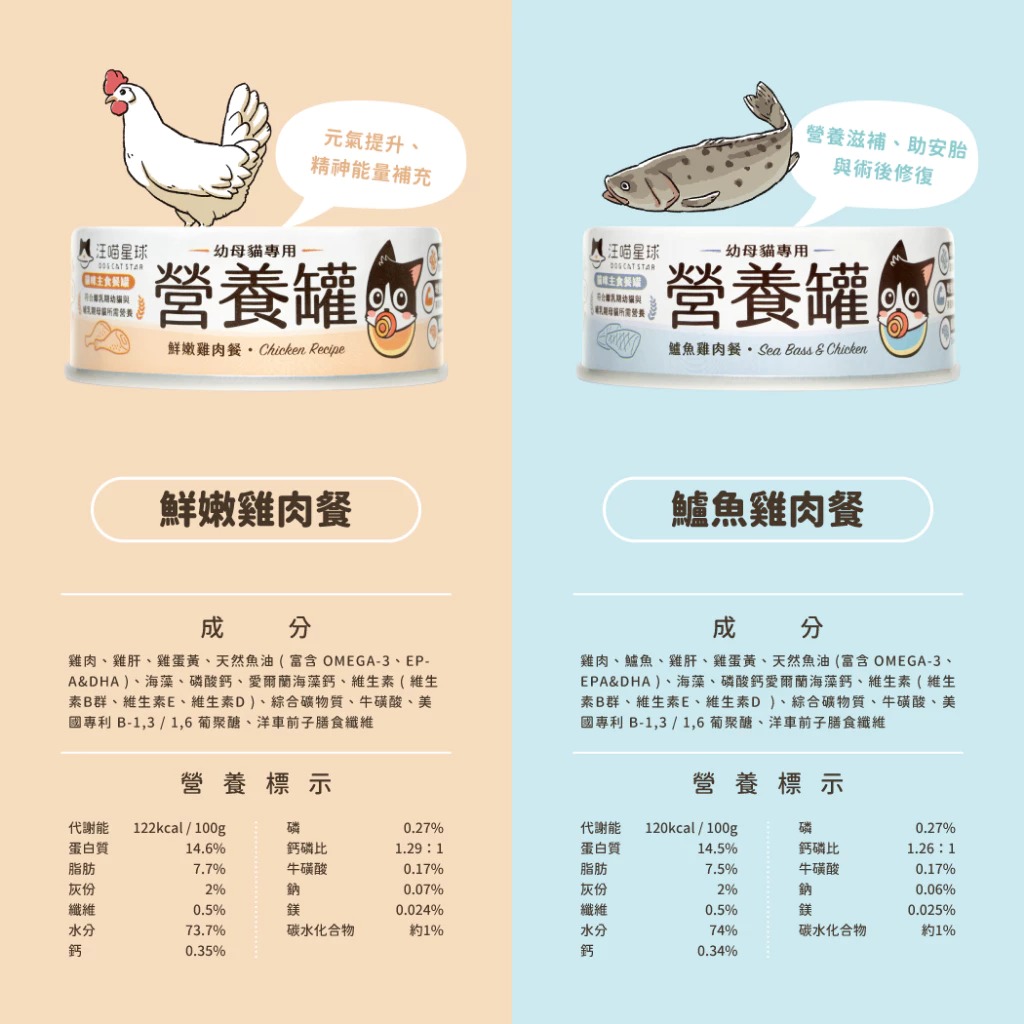 • 幼貓、全齡貓、哺乳孕貓、術後貓作營養補充
