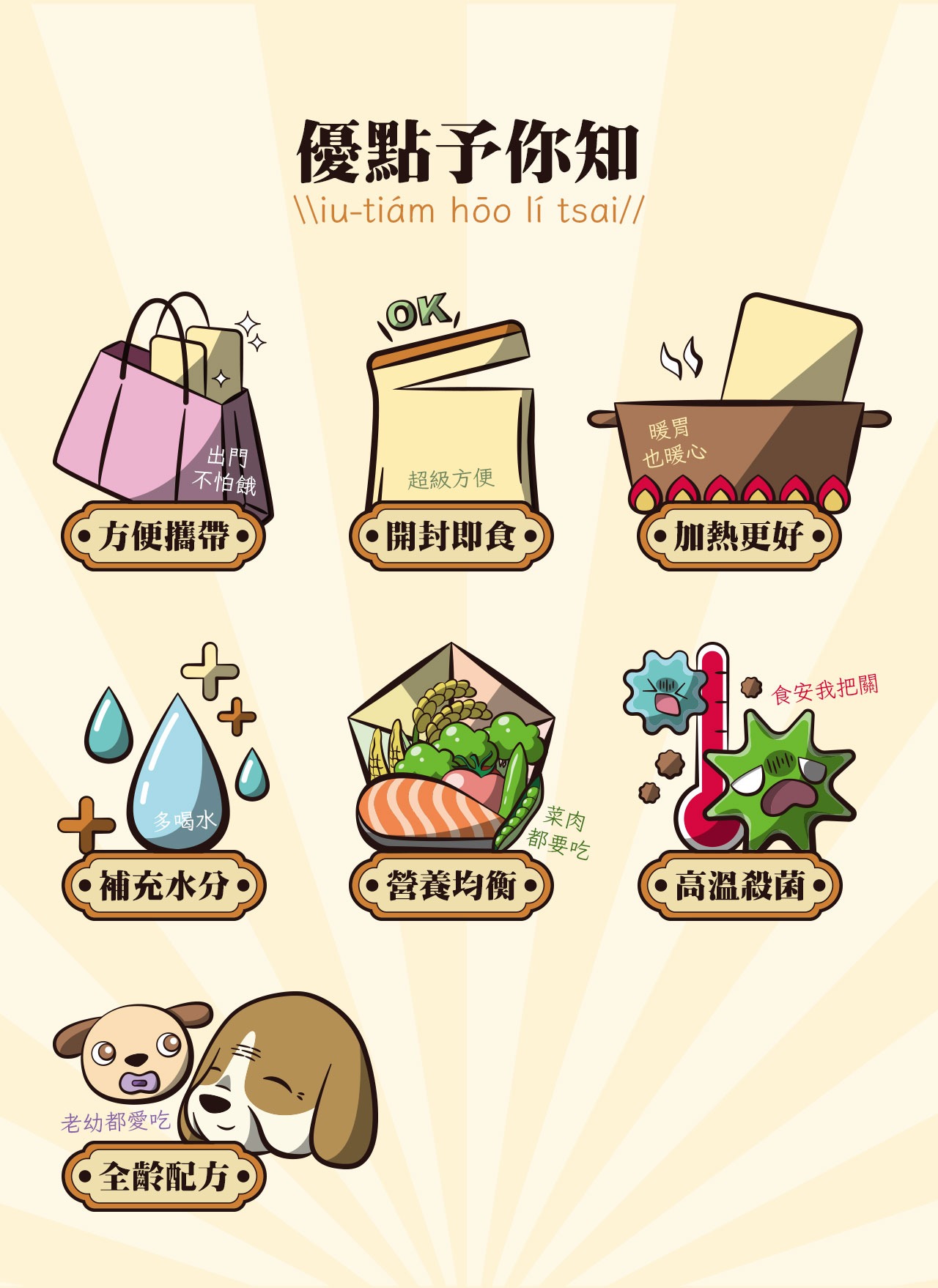 ◆挑選最新鮮的食材,用最簡單的烹調方式,不添加任何人工香料。本公司營養師研發完美比例,滿足毛孩每日所需營養,吃得安心、健康、無負擔。特殊性狀,適合牙口不好的毛孩,樂齡、幼寵皆可食用。