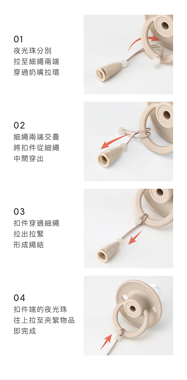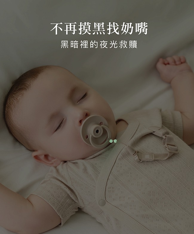 •柔和夜光珠設計,夜間不再摸黑找奶嘴。