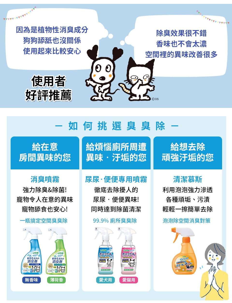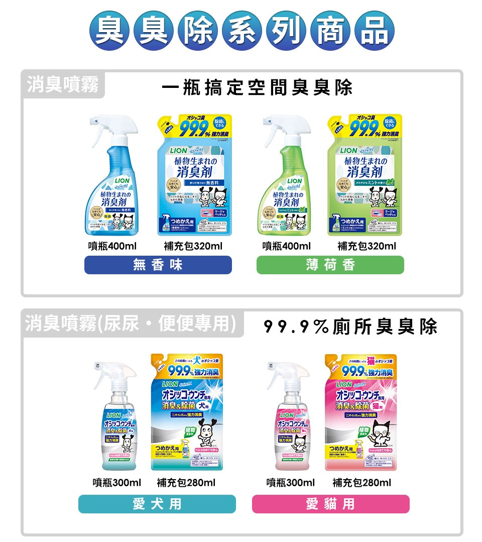 ・不僅去除貓犬的臭味有效,其他寵物如兔子、黃金鼠、鳥等小動物均推薦使用。