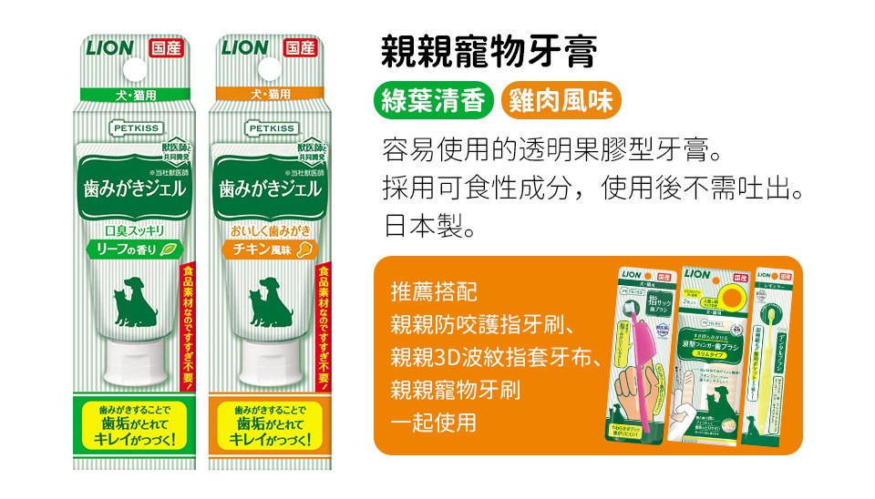 日本獅王親親寵物牙膏(綠葉清香/雞肉風味/蘋果風味)