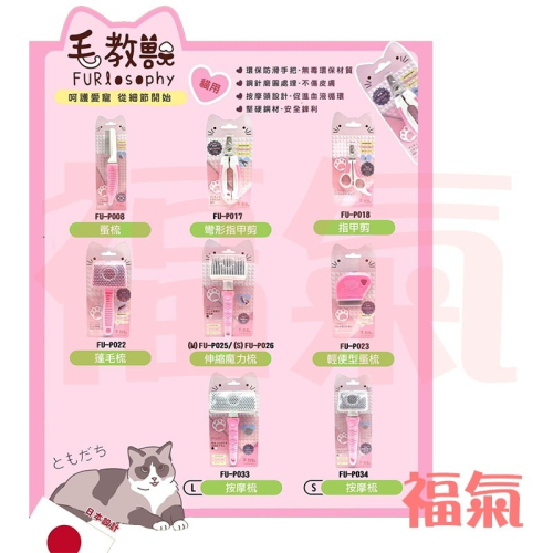 ●產品規格:蚤梳FU-P008、彎形指甲剪(FU-P017)、指甲剪(FU-P018)、蓬毛梳(FU-P022)、輕便型蚤梳(FU-P023)、伸縮魔力梳M(FU-P025)、伸縮魔力梳S(FU-P026)、按摩針梳L(FU-P033)、按摩針梳S(FU-P034)