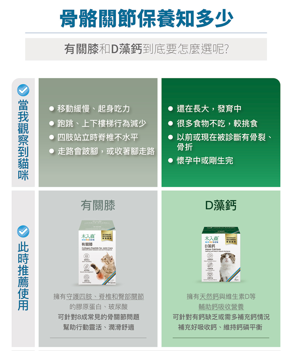 以及「關節不適」貓咪的護理營養。即早關節保養