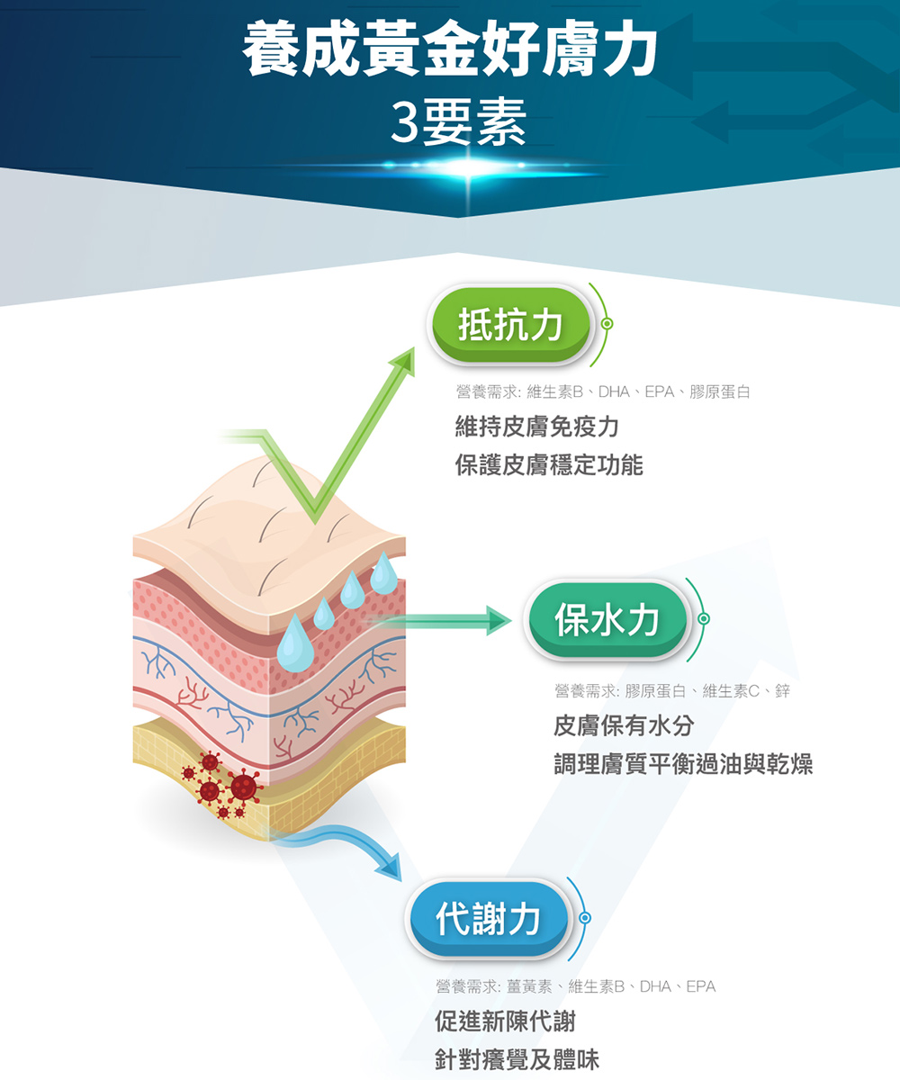 1. 抵抗力:維持免疫力,保護皮膚功能