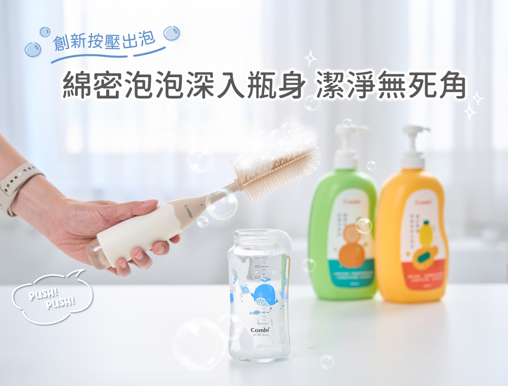 • 按壓出泡奶瓶刷,讓清潔更有效率