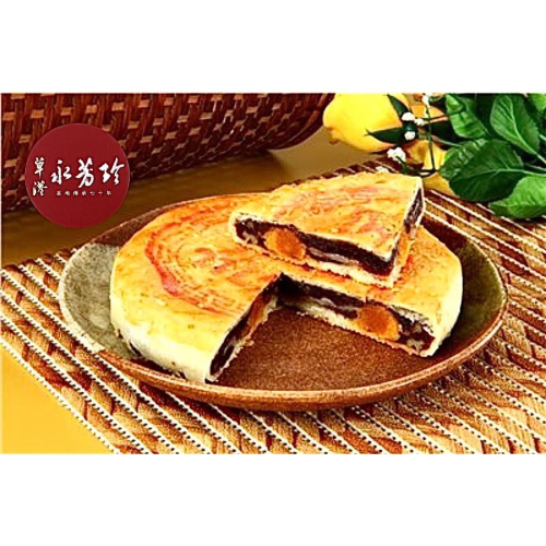 細膩香滑的紅豆餡,搭配新鮮鹹蛋黃與酥脆核桃,麻糬香Q彈牙,後勁十足;外覆特製餅皮,層次分明的香酥口感,使麻糬餅成為草港永芳珍詢問人氣強強滾的火紅商品。