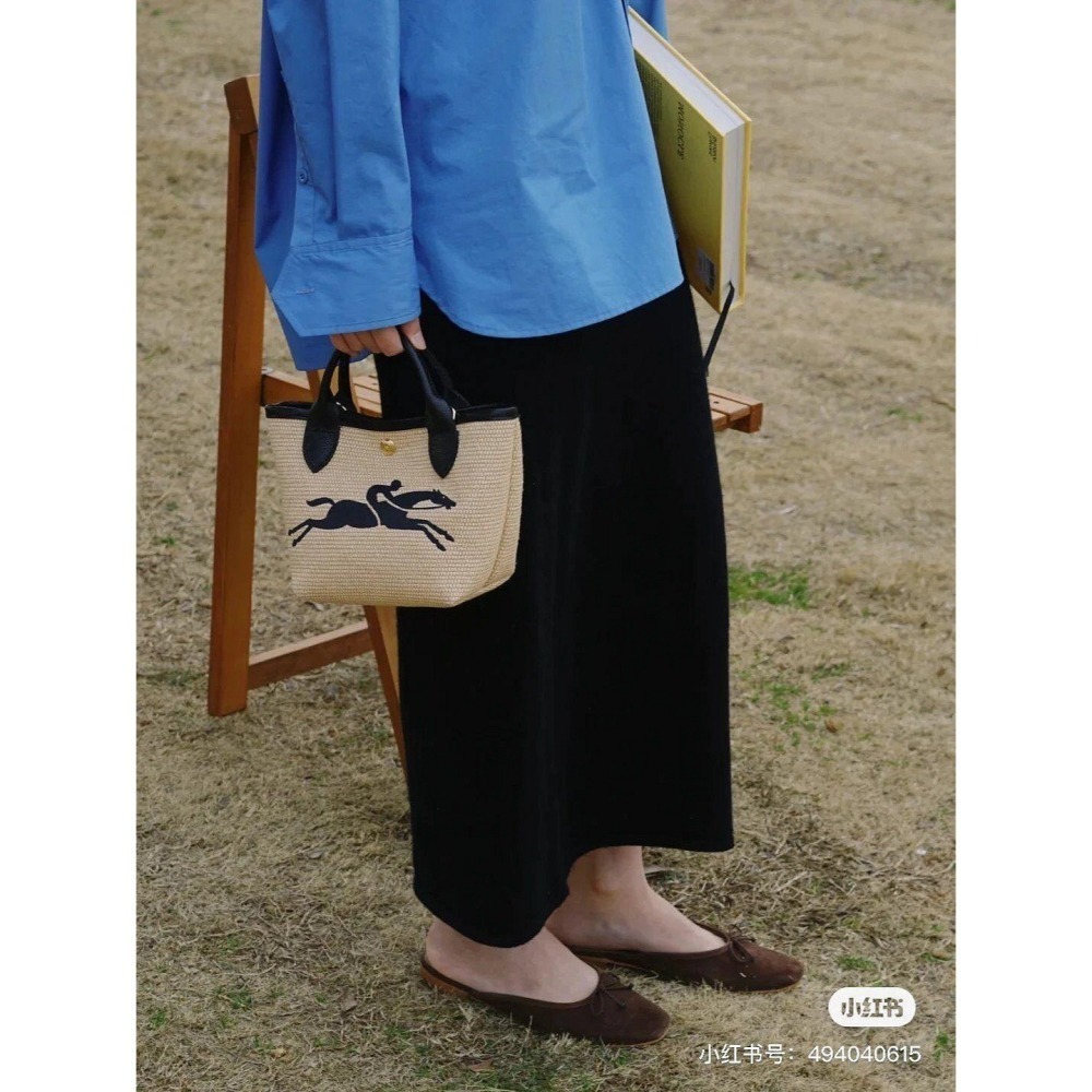 ✨美國代購✨法國正品Longchamp 迷你款拉菲草編包水餃包斜跨包 限時特賣