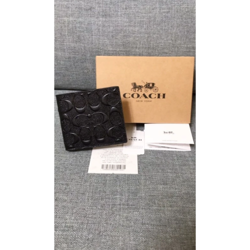 ✨美國代購✨特賣 COACH 經典浮雕logo 滿版c字 男款 零錢夾 鈔票夾 男款短夾
