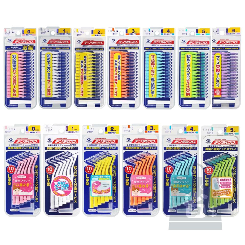 【品名】DENTALPRO牙間刷L型 【用途】齒縫清潔 【較適合後排臼齒使用】 【用法】慢慢直行插入齒縫中,來回刷動數次。 【保存方法、注意事項】 ●請選擇合適的大小,避免牙齦受傷勿強行插入牙縫。 ●鋼線請勿旋轉或折彎,避免折斷而吞入。 ●刷毛損壞或鋼線彎曲,請更換新品。 ●使用完畢請充分沖水洗淨,置於通風乾燥處。 ●牙齦脆弱者首次使用可能會出血,若數次使用後仍有出血狀況,請停用並諮詢牙醫。 ●勿置於嬰幼兒可取處。 【材質】手柄/聚乙烯、刷毛/尼龍、線材/不銹鋼、蓋子/聚丙烯 【規格】10入 【最小通過直徑】 <粉>0號(4S)0.6mm <白>1號(3S)0.7mm <黃>2號(2S)0.8mm <橘>3號(S)1.0mm <藍>4號(M)1.2mm <綠>5號(L)1.5mm 【產地】日本 【製造日期】請見包裝標示 【保存期限】10年 ******************************************************************************************************************************************************************************************************* 【品名】DENTALPRO牙間刷I型 【用途】齒縫清潔【較適合前排牙齒使用】 【用法】 圖1慢慢直行插入齒縫中,來回刷動數次。 圖2請注意可彎曲處,鋼線請勿折彎。 圖3刷蓋用於延長用時,請確實插入。 【保存方法、注意事項】 ●請選擇合適的大小,避免牙齦受傷勿強行插入牙縫。 ●鋼線請勿旋轉或折彎,避免折斷而吞入。 ●刷毛損壞或鋼線彎曲,請更換新品。 ●使用完畢請充分沖水洗淨,置於通風乾燥處。 ●牙齦脆弱者首次使用可能會出血,若數次使用後仍有出血狀況,請停用並諮詢牙醫。 ●勿置於嬰幼兒可取處。 【材質】手柄/聚乙烯、刷毛/尼龍、線材/不銹鋼、蓋子/聚丙烯 【規格】15入 【最小通過直徑】 <粉>0號(4S)0.6mm <白>1號(3S)0.7mm <黃>2號(2S)0.8mm <橘>3號(S)1.0mm <藍>4號(M)1.2mm <綠>5號(L)1.5mm <紫>6號(2L)1.9mm 【產地】日本 【製造日期】請見包裝標示 【保存期限】10年