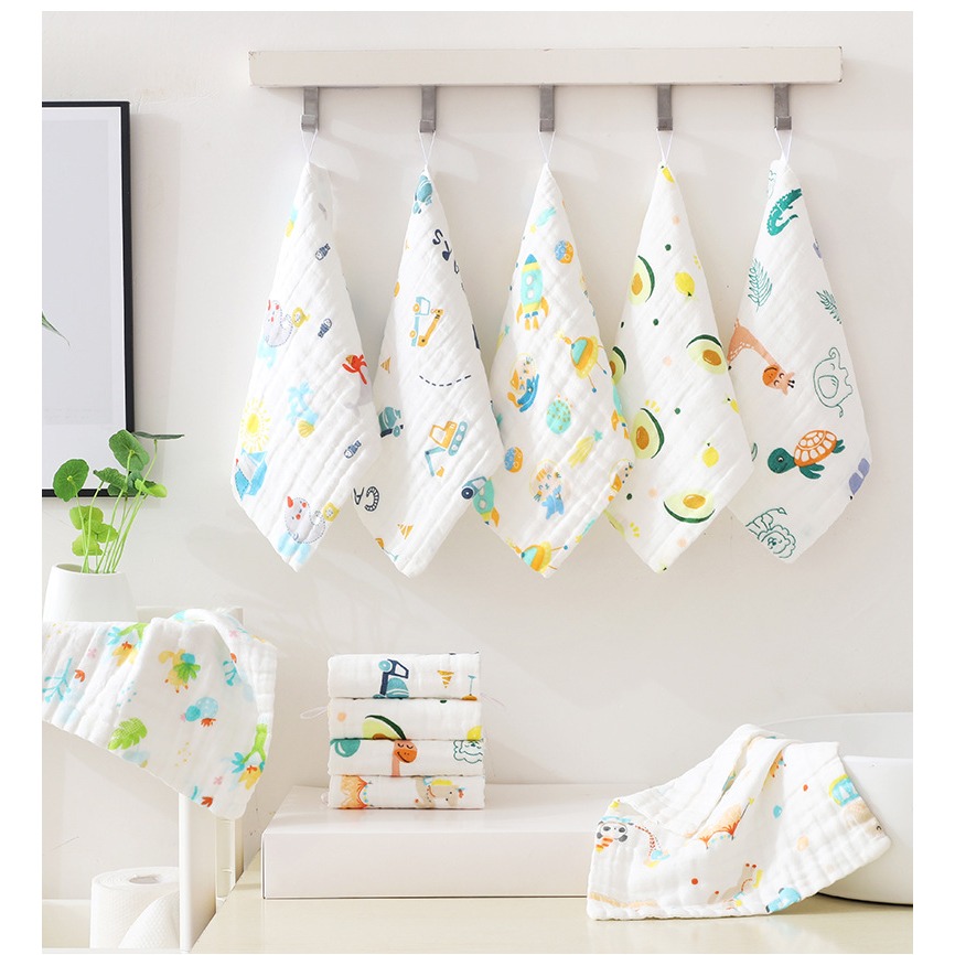 六層紗純棉泡泡紗布巾 25*25cm 掛繩擦手巾 嬰幼兒紗布巾