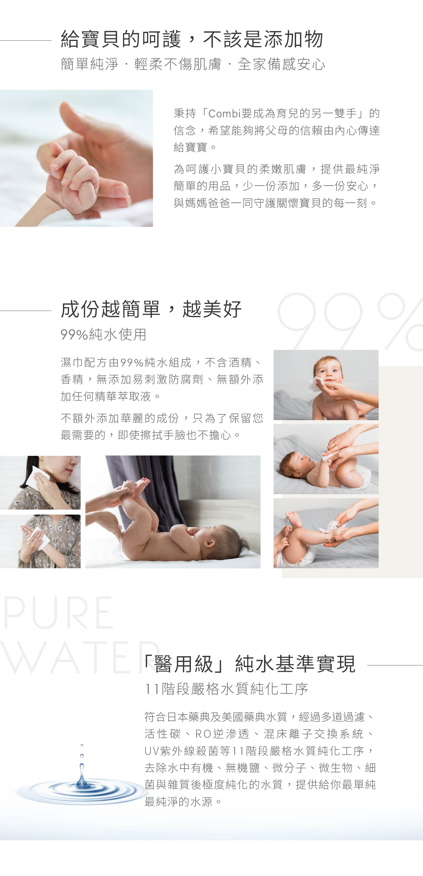 Combi康貝 純水柔濕巾 濕紙巾80抽-3入(一串) 59425