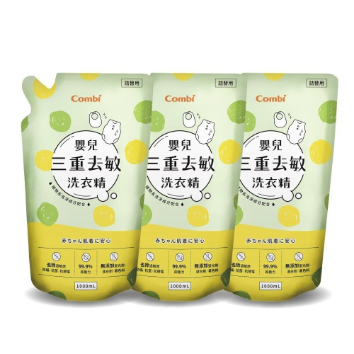 Combi康貝 嬰兒三重去敏洗衣精補充包(1000mlx3) 4719873592890