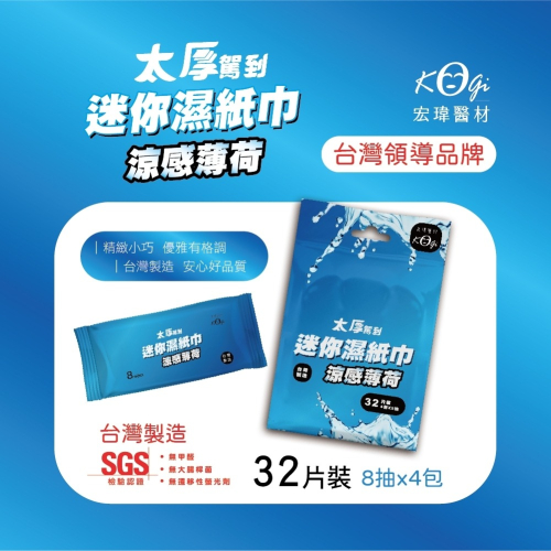 宏瑋 KOGI 8抽迷你柔膚濕紙巾(薄荷涼感) 8抽*4包/袋 隨手包 柔濕巾 涼感 4719879428278