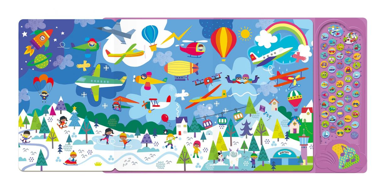 天空中有好多交通工具在飛來飛去……太空船載著太空人,穿過大氣層前往太空;載著滿滿的旅客的客機,準備降落在機場;飛行船在空中到處飛翔……它們發出什麼聲音呢?