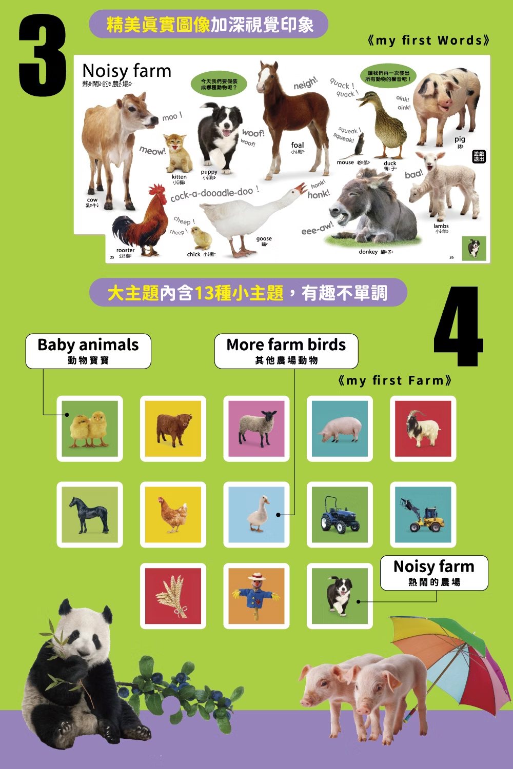 本系列共四大主題:動物、農場、自然、常用字彙