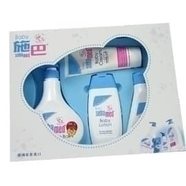 內容物: 泡泡浴露500ml(附壓頭)*1、嬰幼兒洗髮乳250ml*1、嬰兒潤膚乳液200ml*1及嬰兒護膚膏200ml*1