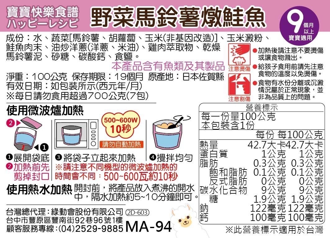 日本KEWPIE-9m+寶寶快樂食譜系列-野菜馬鈴薯燉鮭魚100g 86809